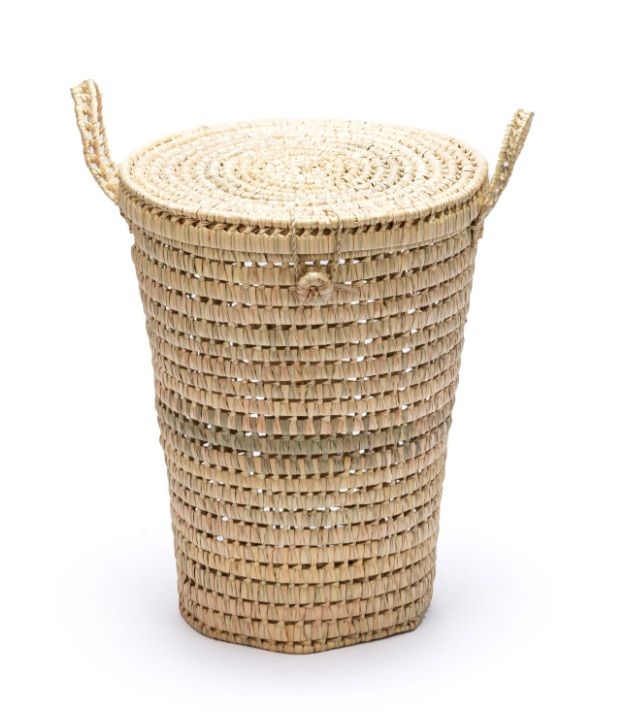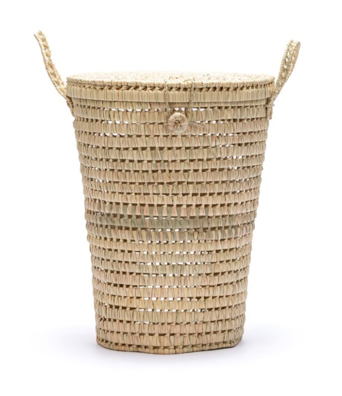Questo cesto per la biancheria è realizzato a mano in Marocco da abili artigiani, utilizzando tecniche di tessitura tradizionali di fibre naturali come dum, paglia, rattan, lana, rafia, vimini o sparto.