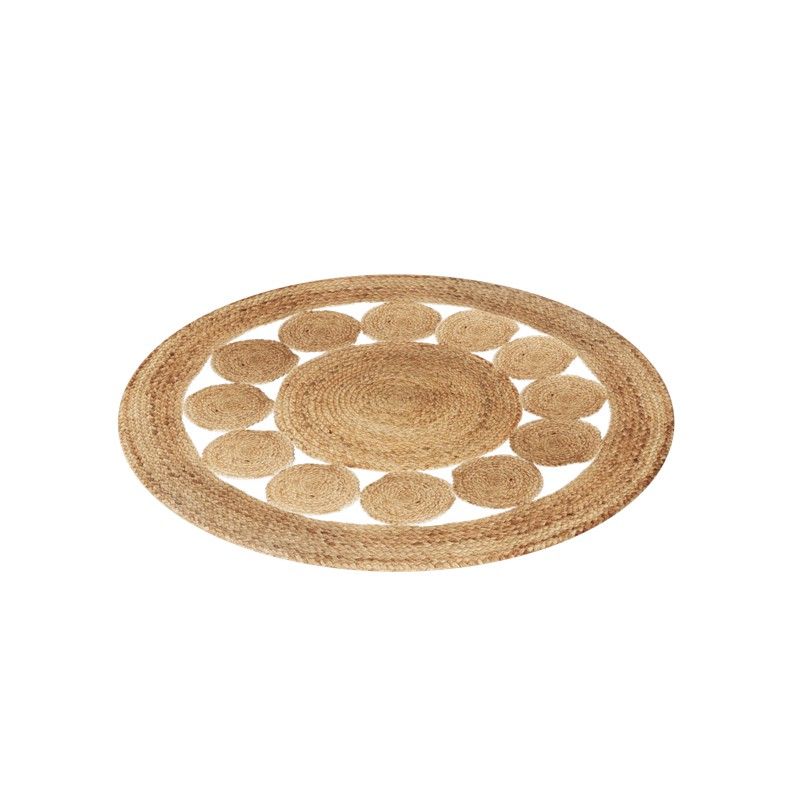 Ravviva la tua stanza optando per il fascino esotico di un tappeto di iuta. Il design arrotondato di questo tappeto in iuta traforata mette in risalto il lavoro di intreccio delle fibre naturali. Cerchi concentrici formano un rosone che lascia intravedere il suolo. La piccola decorazione extra: Osa decorare la tua parete con colori naturali e appendi questo tappeto alla parete per vestire la tua stanza con originalità. Abbina questo tappeto a un pouf in iuta e ai cuscini in iuta abbinati, disponibili nelle misure 45x45 cm e 30x50 cm.